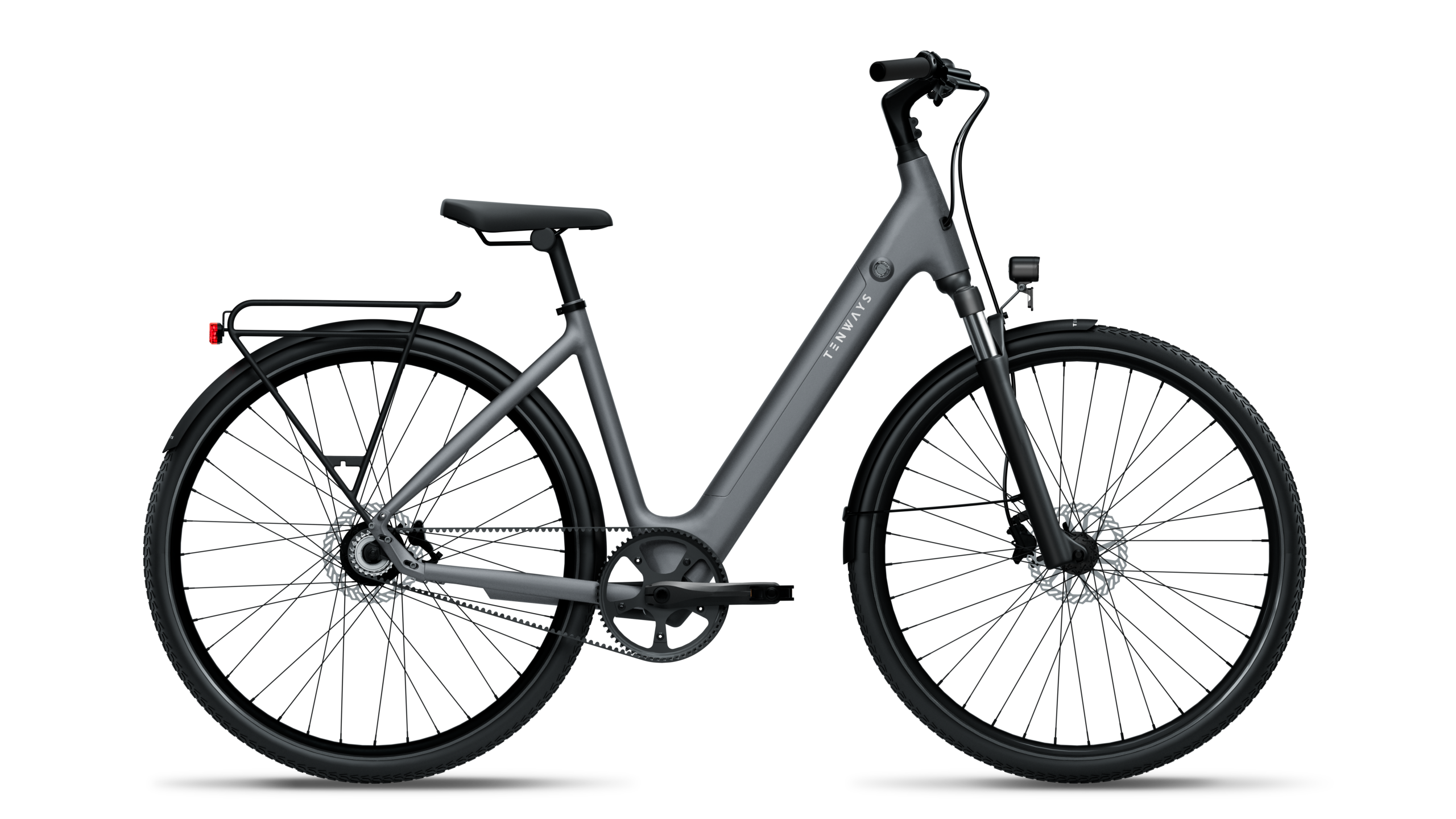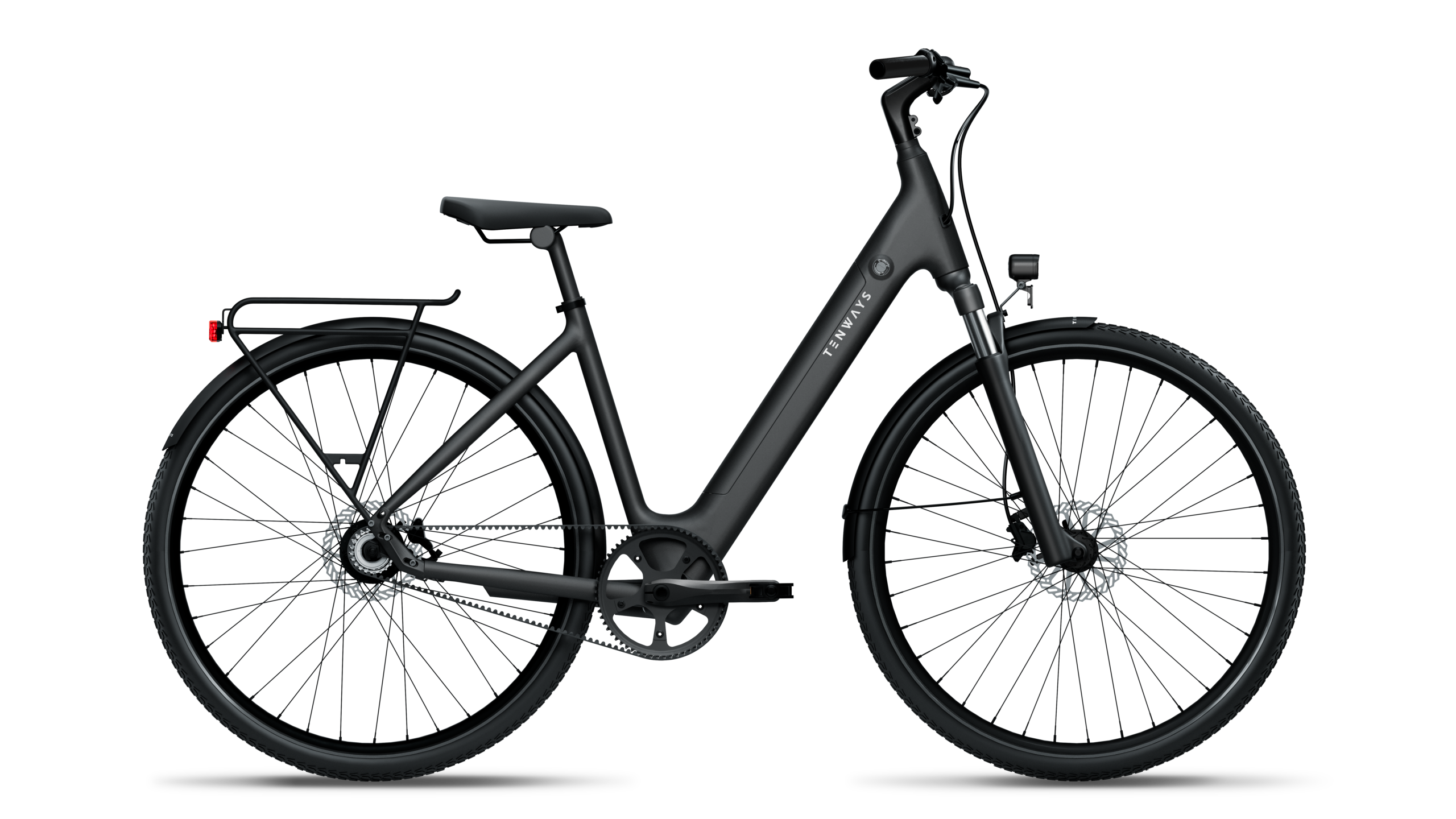Met een gewicht van circa 19 kg is de TENWAYS CGO800S licht in zijn klasse. De uitneembare accu van 460 Wh, strak geïntegreerd in het frame, biedt een actieradius tot 100 km. De onderhoudsarme carbon riemaandrijving maakt de fiets stil, schoon en vrijwel onderhoudsvrij. Via het duidelijke OLED-display houd je eenvoudig overzicht over snelheid, accustatus en ondersteuningsniveau.